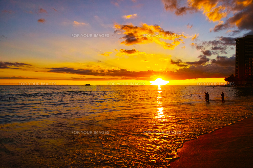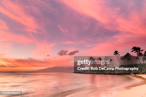 A pink sky above the lovely beach called Kapalua Bay, in Maui, Hawaii